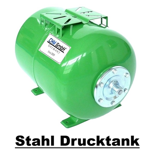 CHM GmbH® 100 L Membrankessel vertikal, Druckkessel 6 Bar Druckkessel Stahl 100 Liter für Hauswasseranlagen, mit italienischer Membran von CHM GmbH in neuer Schweiß Qualität !! Technische Daten: Max. Druck: 6 Bar Max. Test Druck 8 Bar Wandung: 1,3 mm Betriebstemperatur: 0-100 ° C Anschluss 1 Zoll Flansch Chrom Butyl Membran Gummiblase Volumen 100 Liter Made in Europe Luftdruck 1,9-2,2 bar Der Kessel wurde auf Druck und Dichtheit geprüft und entspricht den EN Normen !!! !! Achtung!! Bitte unbedingt ca. alle 2 Monate den Luftdruck im Kessel überprüfen und Luft nachfüllen. Der Luftdruck bei einem leerem Kessel soll ca. 1,9-2,2 bar betragen !! Aktuell ist nur noch die Farbe Grün RAL6830 lieferbar abweichend von den Bildern !! Versand am gleichen Werktag bei Bestellung bis 13:00