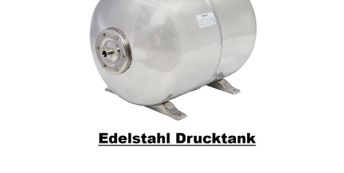 100 Liter Edelstahl Druckkessel Ausdehnungsgefäß Membrankessel für Hauswasseranlagen von CHM GmbH Unsere Edelstahl-Drucktanks werden nach eigenen Vorgaben hergestellt und übertreffen dadurch den Standard der EU-Norm. Wir haben unsere Edelstahltanks zusätzlich verbessert und diese mit einer doppelten Schweißnaht versehen. Somit sind unsere Edelstahl-Drucktanks robuster und widerstandsfähiger als die der Mitbewerber. Technische Daten 100 Liter Edelstahl Druckkessel: Max. Druck: 8 Bar Wandung: 1,3 mm Betriebstemperatur: 0-90 ° C Anschluss 1 Zoll Edelstahl Flansch Butyl Membran Gummiblase Volumen 100 Liter Made in Europe Luftdruck 1,9-2,2 bar Trinkwasser geeignet !! Höhe 85cm Durchmesser 45 cm Der Kessel wurde auf Druck und Dichtheit geprüft und entspricht den EN Normen. Hinweis: Bitte unbedingt ca. alle 2 Monate den Luftdruck im Kessel überprüfen und Luft nachfüllen. Der Luftdruck bei einem leerem Kessel soll ca. 1,9-2,2 bar betragen. Versand am gleichen Werktag bei Bestellung bis 13:00 Uhr