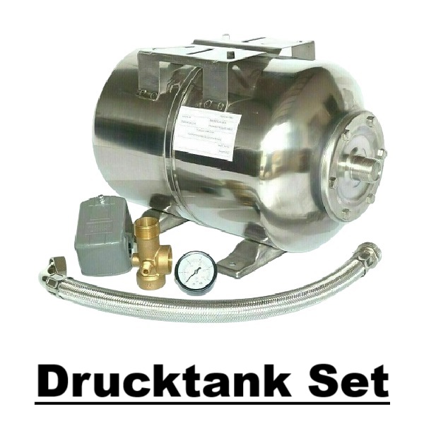 24 Liter Edelstahl Druckkessel Ausdehnungsgefäß Membrankessel für Hauswasseranlagen von CHM GmbH Unsere Edelstahl-Drucktanks werden nach eigenen Vorgaben hergestellt und übertreffen dadurch den Standard der EU-Norm. Wir haben unsere Edelstahltanks zusätzlich verbessert und diese mit einer doppelten Schweißnaht versehen. Somit sind unsere Edelstahl-Drucktanks robuster und widerstandsfähiger als die der Mitbewerber. Technische Daten 24 Liter Edelstahl Druckkessel: Max. Druck: 8 Bar Max. Test Druck 8 Bar Wandung: 1,2 mm Anschluss 1 Zoll Betriebstemperatur: 0-100 ° C Butyl 24 L Gummiblase Luftdruck 1,8-2,0 Bar Abmessungen Kessel + Platte: Höhe 29 cm Länge 49 cm Durchmesser:26 cm Pumpenplatte: 20cm x 16,5cm x 6,5 cm Der Kessel wurde auf Druck und Dichtheit geprüft und entspricht den EU Normen. Hinweis: Bitte unbedingt ca. alle 2 Monate den Luftdruck im Kesselüberprüfen und Luft nachfüllen. Der Luftdruck bei einem leerem Kessel soll ca. 1,8-2,0 bar betragen. Versand am gleichen Werktag bei Bestellung bis 13:00